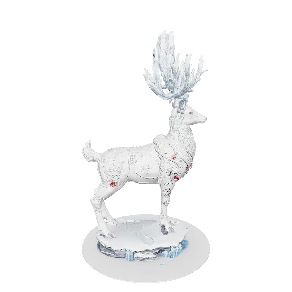 Unveil a creature of winter's elegance with JuJuBit’s exquisite Eirwyn. This majestic collectible captures the serene beauty of an arctic spirit, standing poised with an ethereal grace. Its striking, expansive antlers glow in an icy light blue, contrasting beautifully with the deer's subtle grey-white body and intricate detailing. Adorned with delicate red accents on its chest, it stands triumphantly atop a sculpted base reminiscent of frozen landscapes and delicate snowdrifts. This figurine isn't just a decorative piece; it's a testament to the magic of the wild, inviting wonder and calm into your space. Perfect for collectors who cherish unique artistic expressions and the mystique of the winter realm.